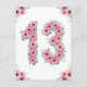 Cartão Postal Grande 13º Aniversário Flores Rosa Menina Folhagem