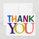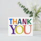 Que tal este cartão-postal divertido e colorido que diz 'OBRIGADO' em letras grandes e coloridas?