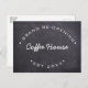Anuncie a grande Reabertura do seu negócio de cafés com estes cartões postais personalizáveis. Fundo de quadro de chalkboard com tipografia de na moda. Personalize o texto e os detalhes.