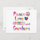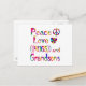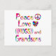 Compartilhe o amor pelo seu neto com esta design colorida com um sinal de paz, coração, e as palavras Abraços e Avós de Amor de Paz.
