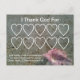 Meu pastor compartilhou conosco como ser grato é a chave para recuar. Ela compartilhou como seu pastor guardou um cartão que listava 10 coisas pelas quais ele estava agradecido a Deus. Quando os tempos eram ruins, quando ele estava se sentindo, ele o tirava e passava pela lista, lembrando cada oração respondida, cada resgate, cada bênção de Deus. Quando chegasse ao fim da lista, seu coração ficaria cheio de alegria novamente. Espero que este cartão ajude você e seus irmãos e irmãs em Cristo. Os corações são para você preencher suas próprias razões para agradecer a Deus.