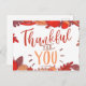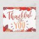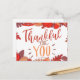 Lindo banner de tema de Dia de Ação de Graças com a legenda artística manuscrita "Grato por você" cercada por folhas de outono.