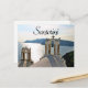 Cartão postal da Grécia da Torre Santorini Crie o seu próprio cartão postal de férias! Qualquer vista que vocês tenham visto, qualquer monumento com que se apaixonaram, pode ser adicionado ao seu cartão postal com a nossa ferramenta de personalização.