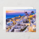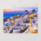 Cartão postal Oia, Santorini, Grécia. O pôr do sol no lugar mais bonito da Grécia.