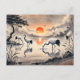 Cartão Postal Grua no Pântano ao Pôr do Sol Pintura Chinesa a Ti
