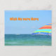 Colorido guarda-chuva de praia brilhante contra o mar tropical com um barco se aproximando, diz tudo! Desejamos que estivessemos aqui! Todo o texto na frente e verso é personalizável. Então envie seus desejos neste cartão postal fotográfico de praia tropical. Esta é uma fotografia de praia original de JLW_PHOTOGRAPHY.