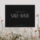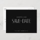 Reserve a data para casamento. Simples. Site de casamento. Preto para trás. Você pode personalizar "o" para "nosso". Fonte moderna. Cartão Postal. Contemporâneo.