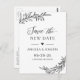 Modelo de Anúncio Adiado de Casamento - Elegante Minimalista Simples Salve o Novo Cartão-Postal de Data. (1) Para mais personalização, clique no link "personalizar mais" e use nossa ferramenta design para modificar esse modelo. (2) Se precisar de ajuda ou itens correspondentes, entre em contato comigo.