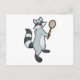 Cartão Postal Guaxinim como jogador de tênis com raquete de têni