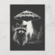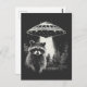 Cartão Postal Guaxinim engraçado em preto e branco no espaço UFO