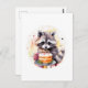 Cartão Postal Guaxinim feliz com bolo de aniversário