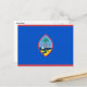 Bandeira de Guam. A bandeira do território dos Estados Unidos de Guam foi adotada em 9 de fevereiro de 1948. A bandeira territorial é azul-escura, com uma fronteira vermelha estreita de todos os lados (a fronteira foi um aditamento posterior). No centro da bandeira está o casaco de braços; um emblema em forma de amêndoa, que representa uma proa navegando na Baía de Agana perto de Hagåtña, e o GUAM colorido em letras vermelhas. A forma do emblema lembra as pedras usadas pelos ancestrais dos ilhéus. A paisagem no fundo mostra o penhasco de Punta-Dos Amantes em Guam.