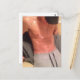 Este cartão-postal mostra uma fotografia de um jovem quente mostrando o seu corpo superior logo após um trabalho no ginásio.