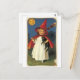 Cartão Postal Halloween antigo, bruxa com gato preto