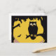 Cartão Postal Halloween Antigo, Coruja Assustadora na Árvore com