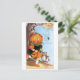 Cartão Postal Halloween antigo, Menina de Abóbora, Gato Negro