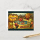 Um belo cartão postal de vintage com maçã a balançar no Halloween.