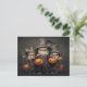 Elevem suas saudações de Halloween com nossos postais elegantes, modernos e simples com três gatos adoráveis em fantasias de spook-tacular. Esses companheiros de felinos encantadores certamente adicionam um toque de relutância aos seus desejos de feriado. Compartilhe a magia do Dia das Bruxas com estilo - envie estes cartões postais encantadores aos amigos e à família hoje!