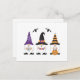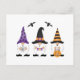 Um desenho animado bonito dos gnomos temáticos do Halloween que abrigam um truque ou tratam balde doce, teia aranha e uma vassoura.