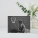 Foto preta e branca de um gato preto olhando para uma aparição fantasma