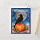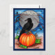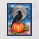 Pintura original de Sandra Gale de um grande raven preto, tocado sobre uma abóbora debaixo da lua de cheio à noite. design excelente para crianças e adultos e uma maneira divertida de celebrar um Dia das Bruxas assustador e assustador!