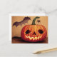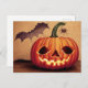 Cartão Postal Halloweenkürbis mit Fledermaus und Spinne.