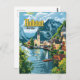 Um retrato pitoresco e nostálgico de Hallstatt, na Áustria, famoso pela sua impressionante paisagem alpina, encanto histórico e cenário litoral pitoresco. A design captura as icônicas casas de cor pastel da aldeia refletidas nas águas tranquilas de Hallstätter See (lago Hallstatt), cercadas por montanhas em torre. Criado no estilo vintage, o trabalho de arte evoca a beleza serena e o alento eterno de Hallstatt, convidando os espectadores a experimentar suas paisagens idílicas e sua rica herança cultural.