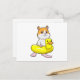 Cartão Postal Hamster na praia com pato como boia inflável