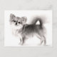 Este retrato desenhado de uma Chihuahua foi criado pelo artista vencedor do prêmio Danguole Serstinskaja, que passou 18 anos como um criador de Chihuahua dedicado. A raça ocupa um lugar especial em seu coração, e através de sua arte, ela busca capturar sua natureza expressiva, seus olhos cheios de alma, e seu caráter carinhoso. Criado usando a mídia tradicional, este cartão postal reflete habilidade artística e uma profunda conexão emocional com a raça.