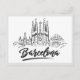 Cartão Postal Hand drawn Sagrada Familia Barcelona Spain