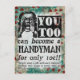 Handyman vintage advertisement in turquoise, aqua, red and black. Arty, funny, colorful and fun, it makes a great gift and will surely bring smiles and laughter to the recipient.