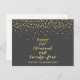 NewParkLane - Cartão-postal personalizado, com 'feliz 2024' (escrito como 'Dois mil e vinte e quatro') em tipografia elegante de pincel/ script em ouro falso, com confete de ouro contra fundo de cinza escura. Um cartão perfeito para enviar para o Ano Novo! Fácil de personalizar no Zazzle com seu próprio texto para um design personalizado. Verifique se há itens correspondentes nesta coleção. Você tem desejos pessoais específicos de design? Sinta-se livre para me contactar!