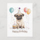 Cartão Postal Happy Birthday Pug Dog