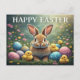 Happy Easter with Bunny Rabbit, Chicks and Easter Eggs Postcard!!