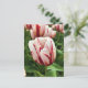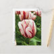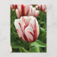 Linda vista de perto de uma tulipa listrada branca e vermelha chamada "Geração Feliz". Foto tirada em abril de 2018 na Fazenda Tulipas de Sapato de Woodburn, Oregon.