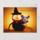 Cartão Postal Happy Halloween. Kleine niedliche Maus mit Kürbis
