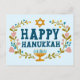 Cartão Postal HAPPY HANUKKAH Floral Wreath Menorah Texto persona