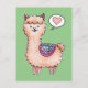 Pintor aquoso, bonito, de lama bronzeada, branca, com um pano multicolorido e padronizado nas costas. À direita está uma bolha de fala com um dentro de coração rosa giro.