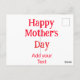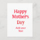 Cartão Postal Happy mother's day red add text simple minimal mom