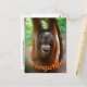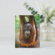 Um jovem orangotango masculino compartilha um sorriso feliz durante a escola da selva na floresta tropical da Indonésia.