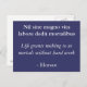 A blue postcard with a latin phrase and the English translation underneath. "Life grants nothing to us mortals without hard work" by the Roman poet, Horace. Basically (in case you couldn't guess), you don't get anything if you don't work hard to achieve it.