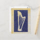 Uma silhueta harpa em azul profundo sobre um sutil fundo de ouro e cinza, texturizada em uma textura parecida com pedra. Simples, mas bonito e clássico. . . um cartão postal de excelente para qualquer amante harp.