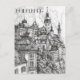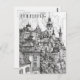 Este cartão-viagem, em estilo desenhado à mão, mostra uma visão dos edifícios históricos de Heidelberg.