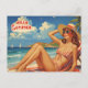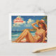Cartão Postal Hello Summer Retro Woman on the Beach
