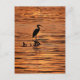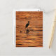 Este cartão-postal de belas artes apresenta um Herão Azul Excelente (ardea herodias) em silhueta, pescando nas águas rasas do lago Cayuga em Ithaca, Nova Iorque, que é um dos lagos dedos do norte de Nova York. Um lindo pôr do sol laranja, amarelo e dourado colorido as ondas e ondulações em um padrão de abstrato.