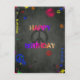 Cartão Postal Hippie Happy Birthday em preto
