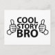 Cool Story Bro é um dos muitos memes de internet hilários e sarcásticos. Usando um polegar para cima e texto preto em negrito, ele adiciona humor e sátira à piada sarcástica.