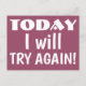 Cartão Postal HOJE EU VOU TENTAR NOVAMENTE Citação Motivacional
