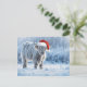 Cute highland calf in the snow with a Santa Hat. A fun holiday postcard.