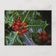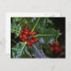 Foto de um aglomerado de folhas sagradas e bagas vermelhas. Esta macro-imagem de uma árvore sagrada mostra o bordo distinto agitado da folha e um aglomerado de bagas vermelhas. Uma fotografia muito festiva para a época de Natal!